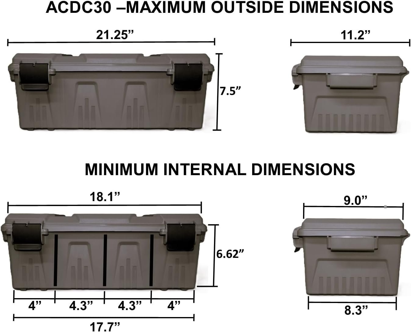 The MTM ACDC30 Divided Ammo Crate Utility Box from the MTM Store is a rugged, USA-made storage solution designed for multi-caliber ammo transport. Featuring a spacious, compartmented interior with three removable partitions, this water-resistant crate offers strong snap latches, four padlock tabs, and heavy-lift handles supporting up to 75 lbs. Its stackable design, tie-down points, and durable construction make it perfect for serious shooters seeking secure, organized, and portable ammo storage.
